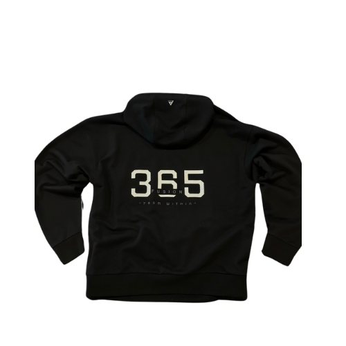 Here is the 365 Hoodie in Black. This is the ultimate warm up layer, on the way to the gym, or to look fresh 365 days a year. It’s a slightly oversized fit for complete comfort & style , with a kangaroo pouch with an internal zipper, for extra secure storage of your belongings whilst training. A doubled snap-button fastener on the hood, finished with the Rubber Fusion logo on the hood and chest, with our 365 number branding on the back.